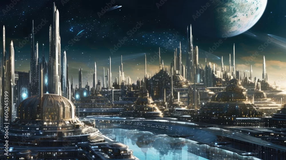 Futuristic Advanced Alien Civilization, Concept Art, Digital Illustration, Generative AI
