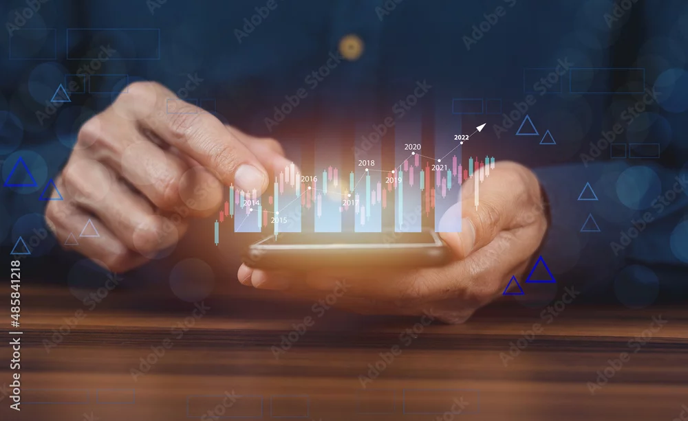 Businessman use smartphone visual screen technology trading online or Investment stock market