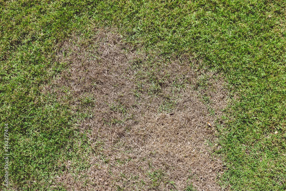 Grass texture, grass background. patchy grass, lawn in bad condition and need maintaining, Pests and disease cause amount of damage to green lawns, lawn in bad condition and need maintaining.
