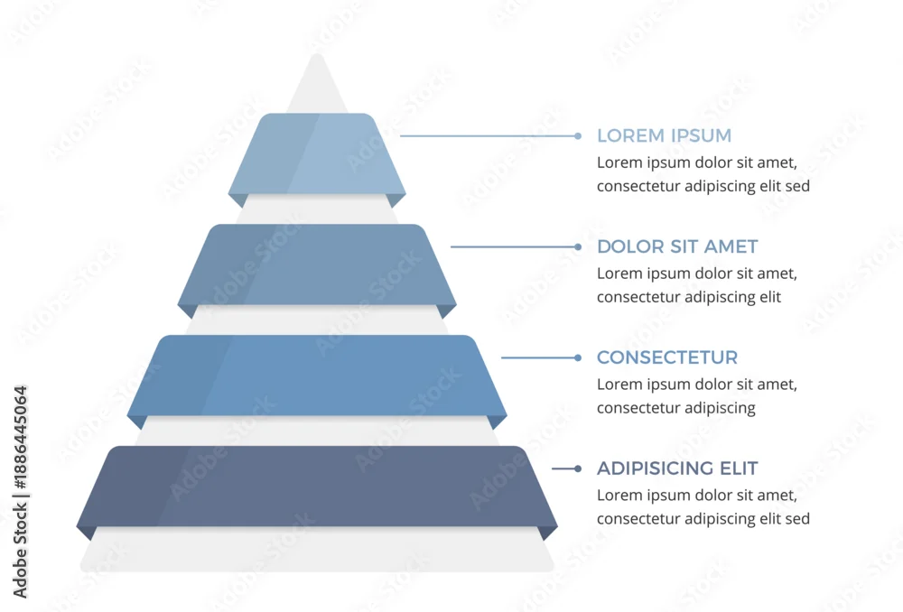 Pyramid diagram with four levels showing hierarchy or process stages, infographic template