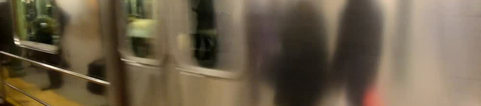 Close up of NYC subway train passing platform. NYC Subway in Motion. Speeding Through the Station: NYC Subway