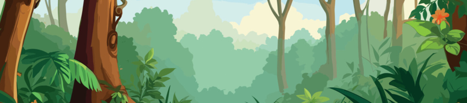 4K Vibrant Cartoon Video of Lush Rainforest Jungle Canopy with Green Screen Vine Sign - Whimsical Animated Stock Footage for Kids and Gaming