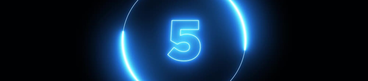 Retro countdown 5 to 0 seconds animation isolated on dark background