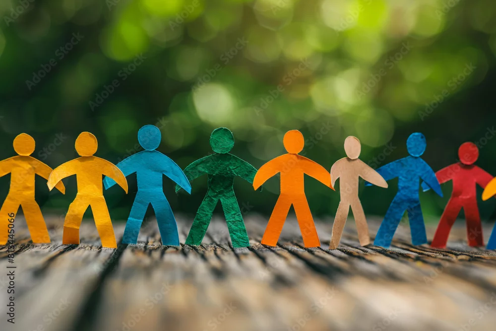 A group of paper people coming together Community and friendship concept