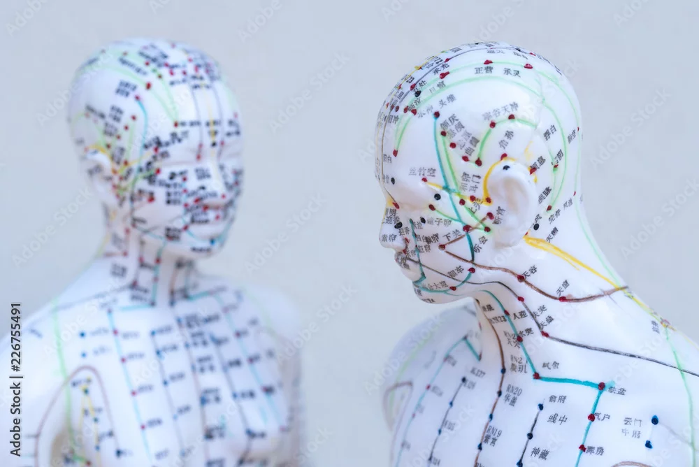 Akupunkturmodell: weiblicher und männlicher Kopf