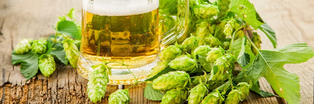 beer and hop cones. selective focus