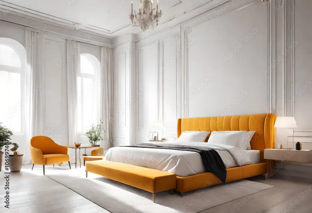 Interno casa. Camera da letto matrimoniale elegante e moderna.