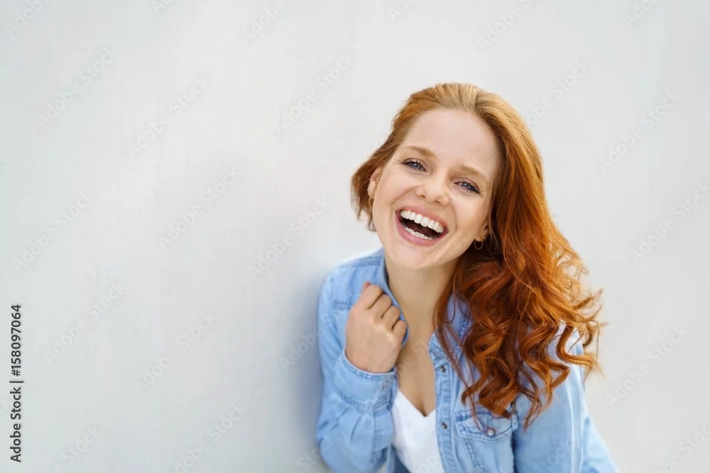 lachende frau mit schönen roten locken