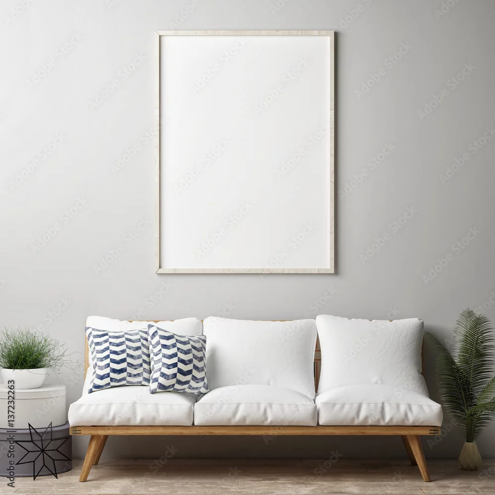 Mock up poster, hipster living room, 3d render, 3d illustration