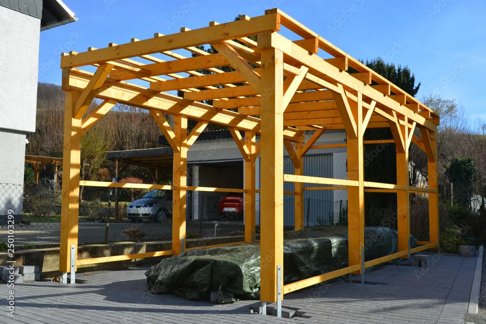 Neuer Carport aus lasiertem Holz