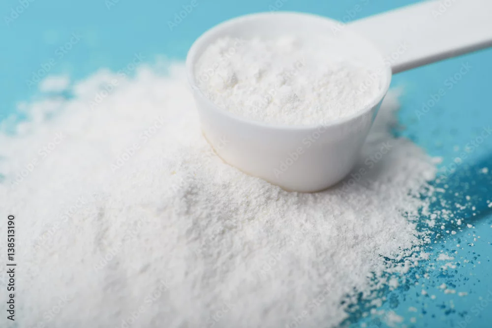 Sport supplement, creatine, hmb, bcaa, amino acid or vitamin mesure with powder. Sport nutrition concept.