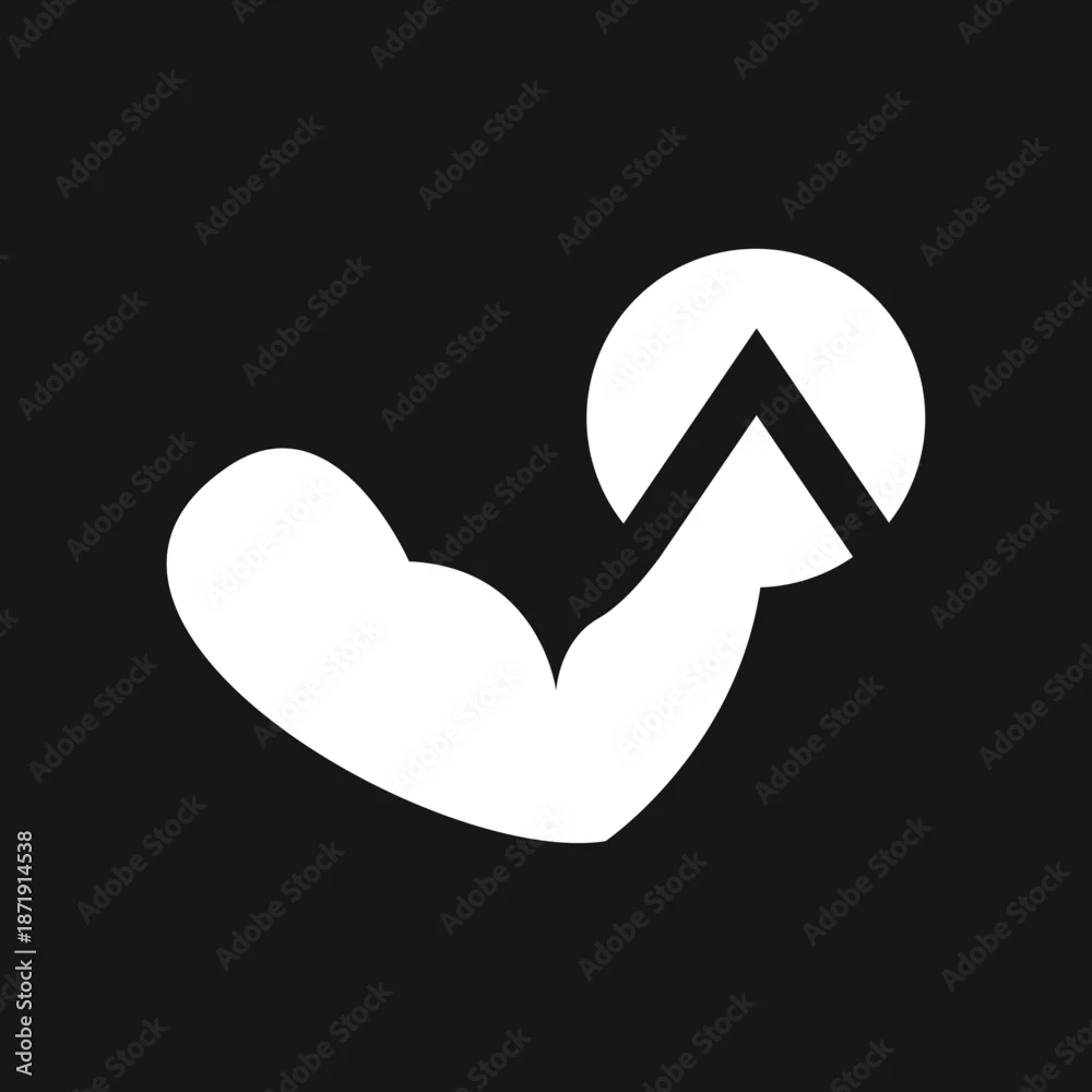 Flexing Bicep Arm with Spartan Lambda Strength Symbol Icon on Black Background