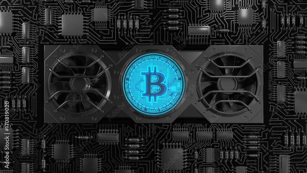 Bitcoin Mining Concept. 3D illustration