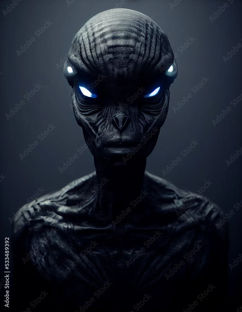 Spooky Demonic Reptilian Alien 3D Art Conceptual Illustration. Stunning Vertical Portrait of Extraterrestrial Life Macabre Creature. Dark Science Fiction ...