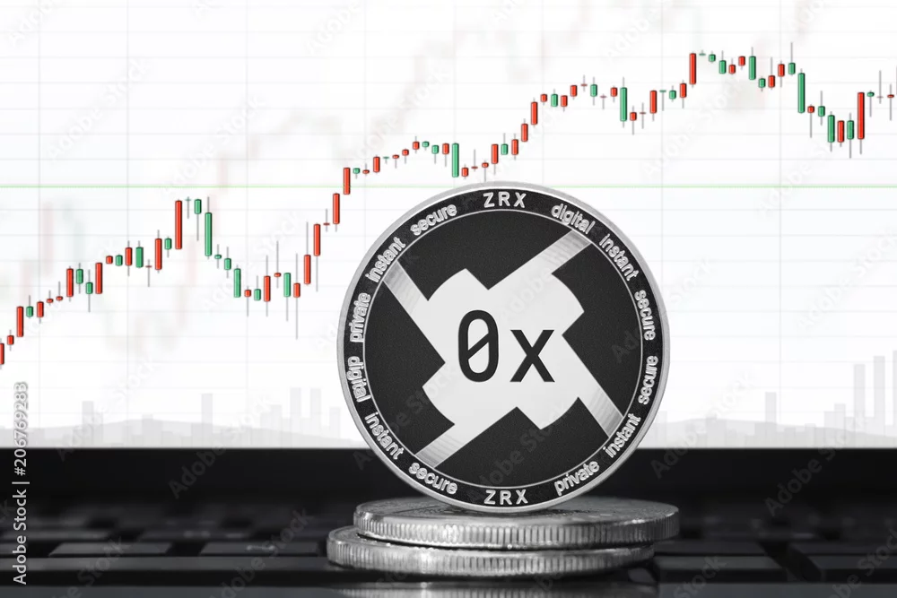 0x (ZRX) cryptocurrency; 0x coin on the background of the chart