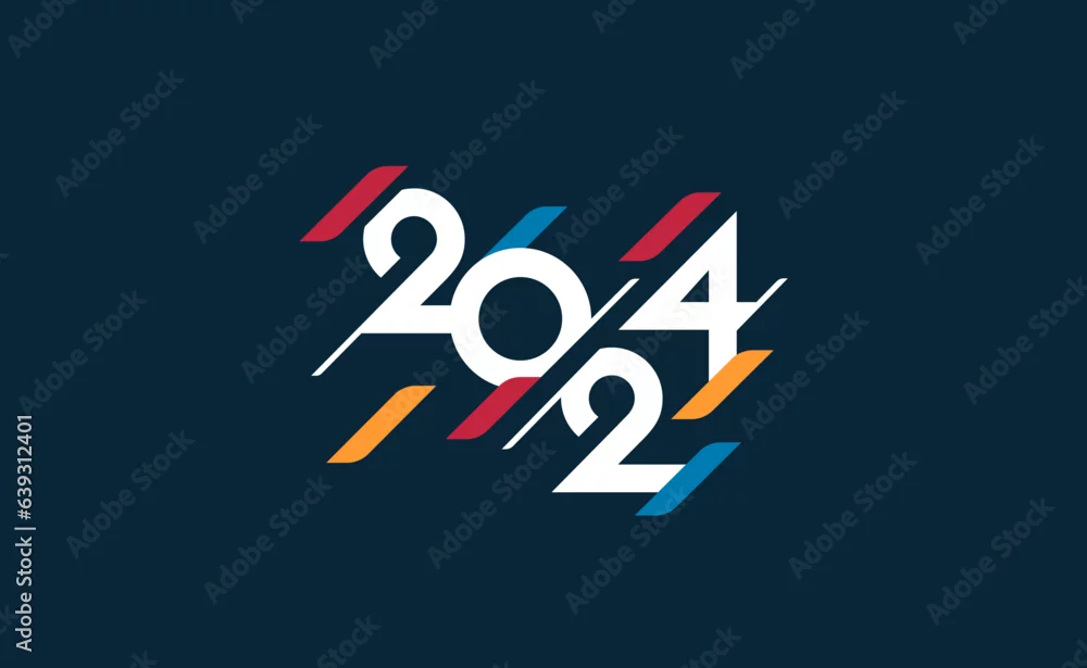 2024 typography logo diagonal design concept. Happy new year 2024 logo design