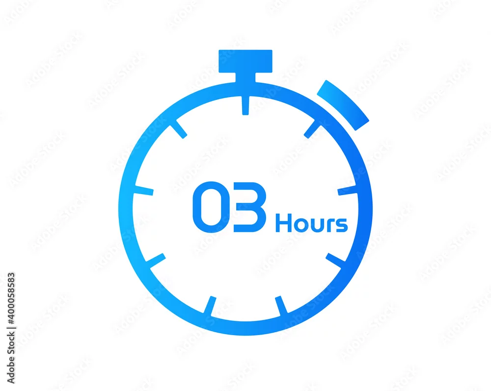 3 Hours timers Clocks, Timer 3 hour icon, countdown icon. Time measure. Chronometer icon isolated on white background