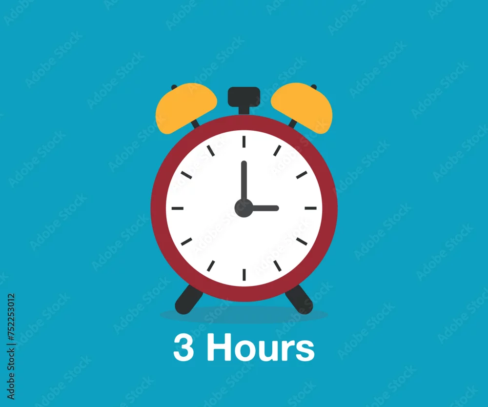 3 Timer sign icon. 3 Hours stopwatch symbol in blue background