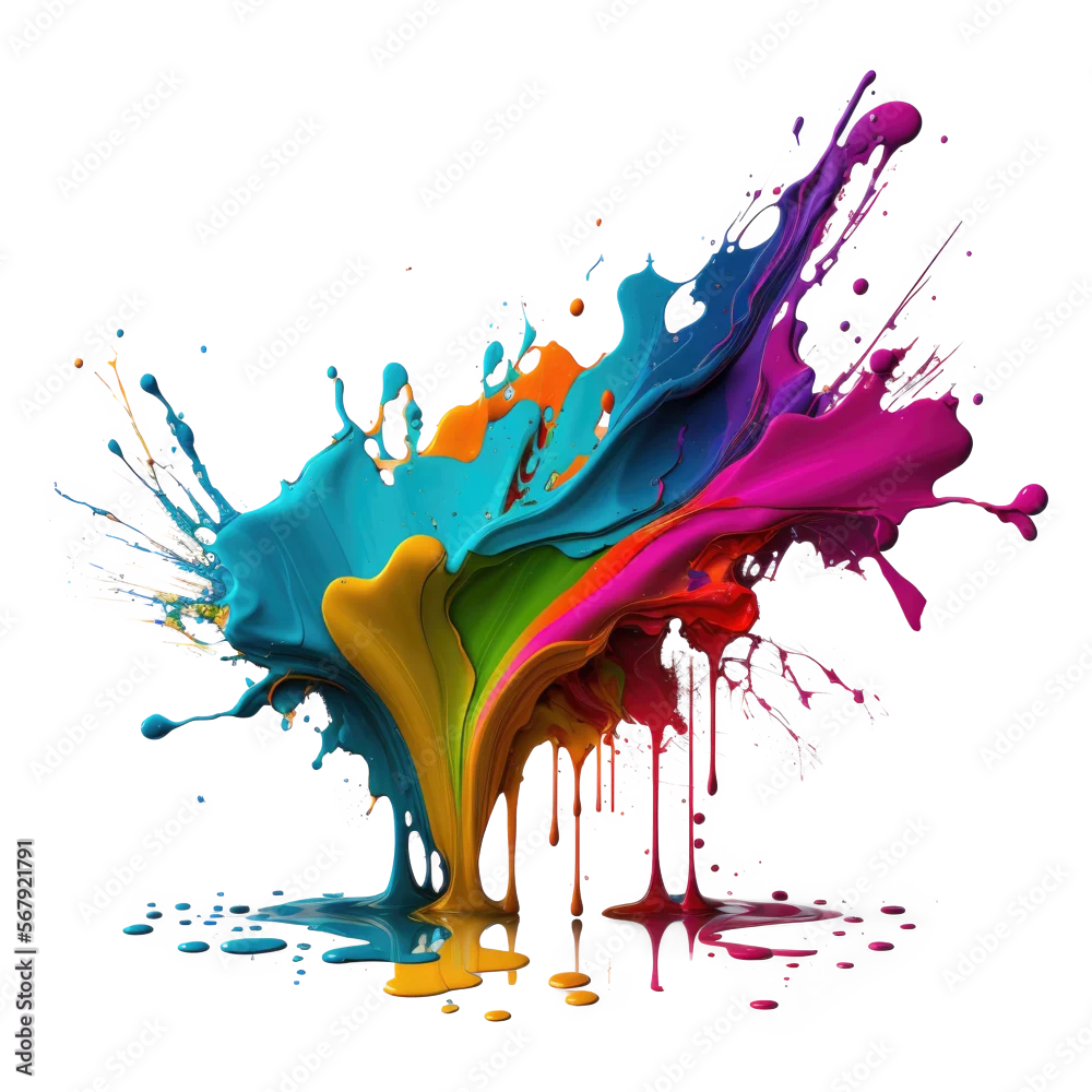 3D Colourful Paint Splash Dripping Paint Being Thrown, Splatter, Splat, Splashing, Rainbow Paint Splash on Transparent White PNG Background