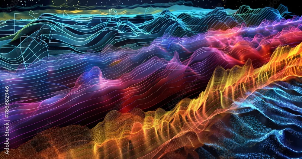 3D Data Visualization Mapping in Vibrant Digital Landscape - Abstract Infographic Technology and Topography