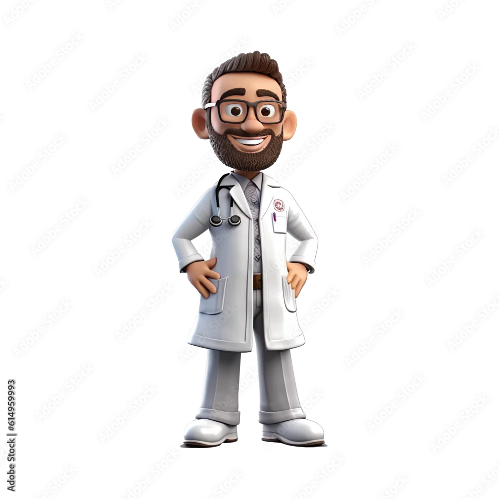 3D Happy cartoon doctor. Cartoon doctor on transparent background. Generative AI