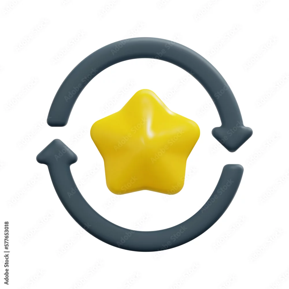 3d repurchase icon vector. Isolated on white background. 3d customer loyalty, brand and marketing concept. Cartoon minimal style. 3d star with circular arrows icon vector render illustration.