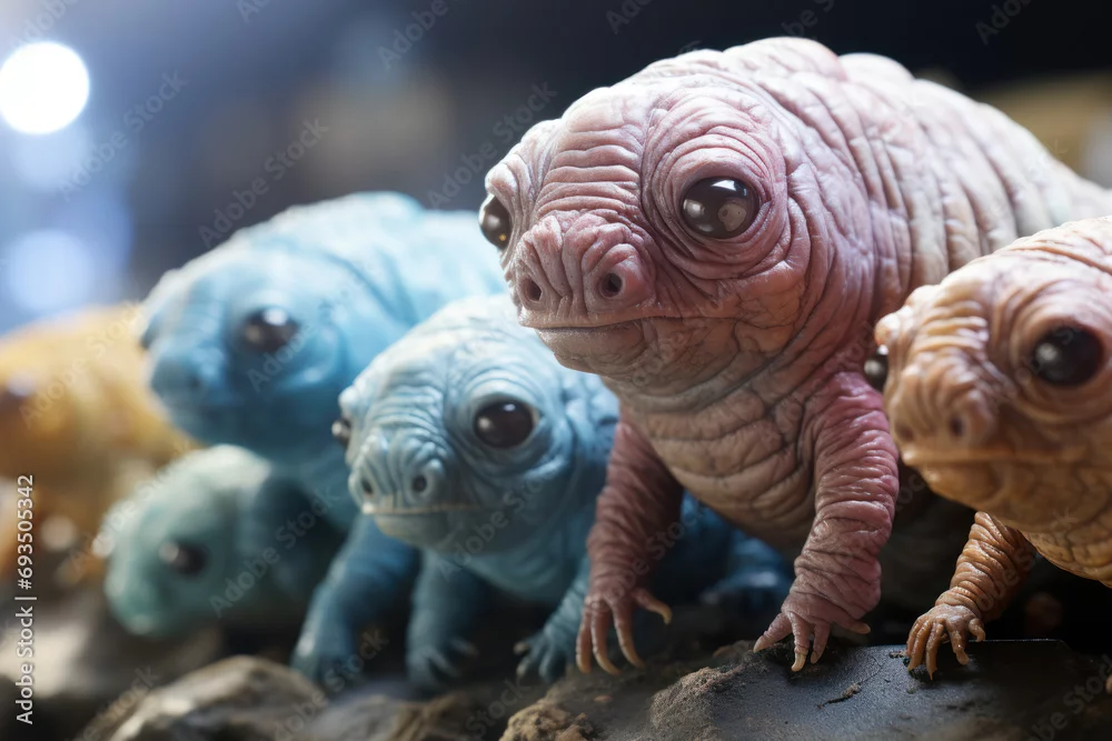 A close-up of microscopic tardigrades, resilient creatures known for their ability to survive extreme conditions. Generative Ai.