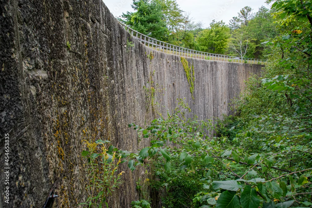 A historic stone arch dam, built in the 1800s before heavy construction machinery existed, stands 18 metres tall in a forest in rural Ontario, taming the ...