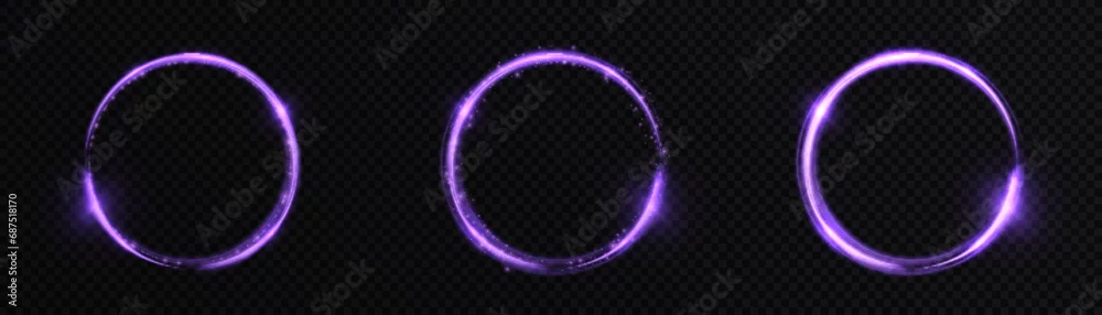 A modern ring light effect with shimmering highlights and glamorous bokeh. Futuristic light effect of round frame. Vector