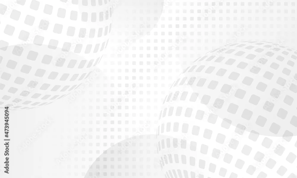 Abstract background with spheres and halftone squares. Grey and white backdrop