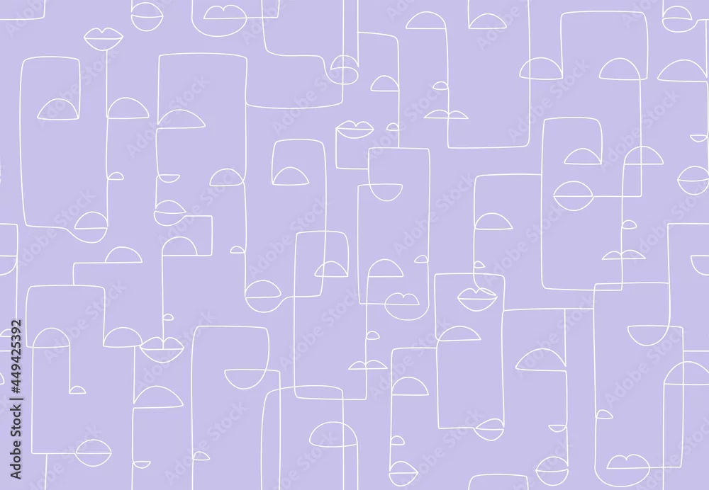 Abstract face seamless pattern. Line art faces, modern texture for fabrics, print, textile, wallpaper, cases. Vector illustration