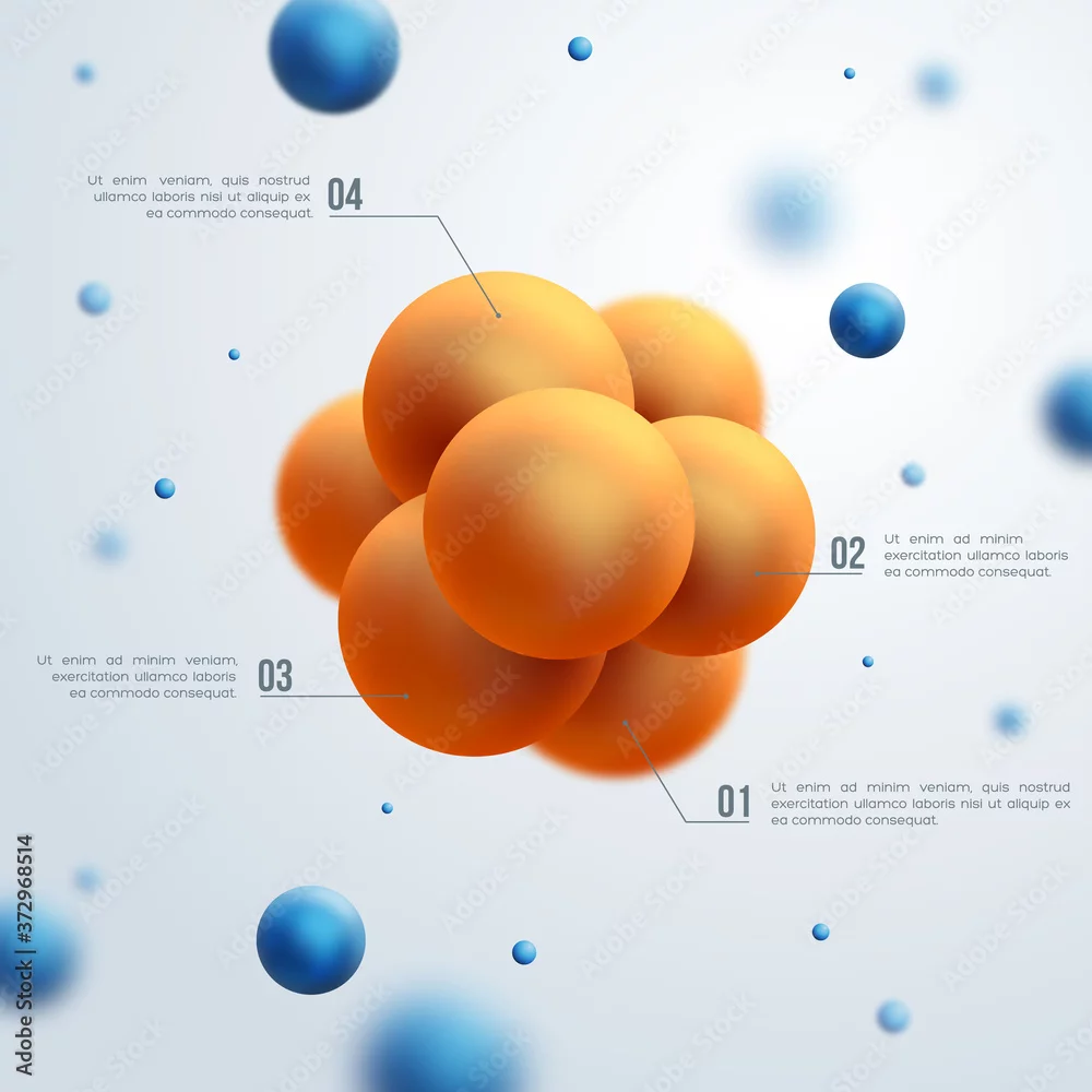 Abstract molecules design. Vector illustration. Group of atoms forming molecule. Chemical technology concept.