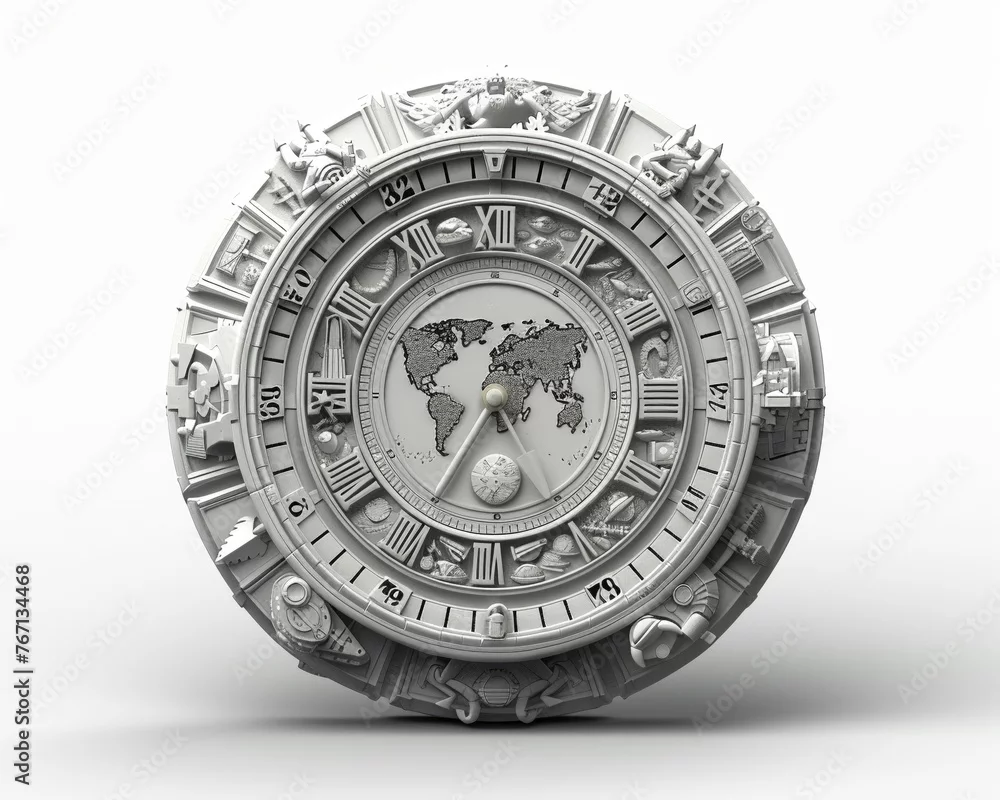Adventurethemed 3D printed clock, with world time zones for the international traveler , 3D render