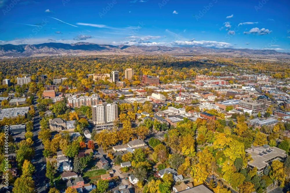 Aerial View of Downtown Fort Collins, Colorado in Autumn