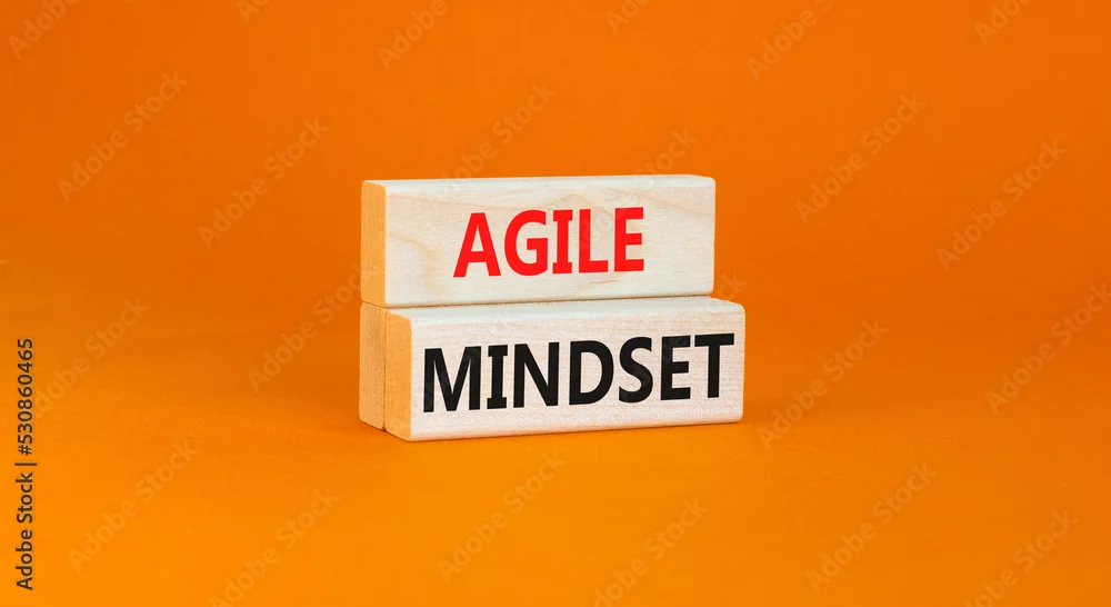 Agile mindset symbol. Concept words Agile mindset on wooden blocks. Beautiful orange table orange background. Business flexible and agile mindset concept. ...