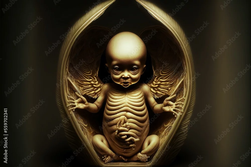 Alien baby in utero, bizarre horror, generative AI