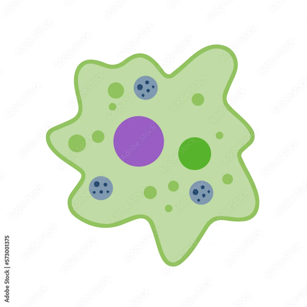 Amoeba cell. Small unicellular animal. Virus and bacteria. Education and science. Flat cartoon illustration