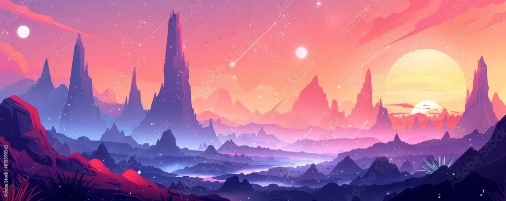 An alien landscape of towering spires and strange geometries, where bizarre flora and fauna thrive amidst the alien vistas, and the boundaries of reality ...