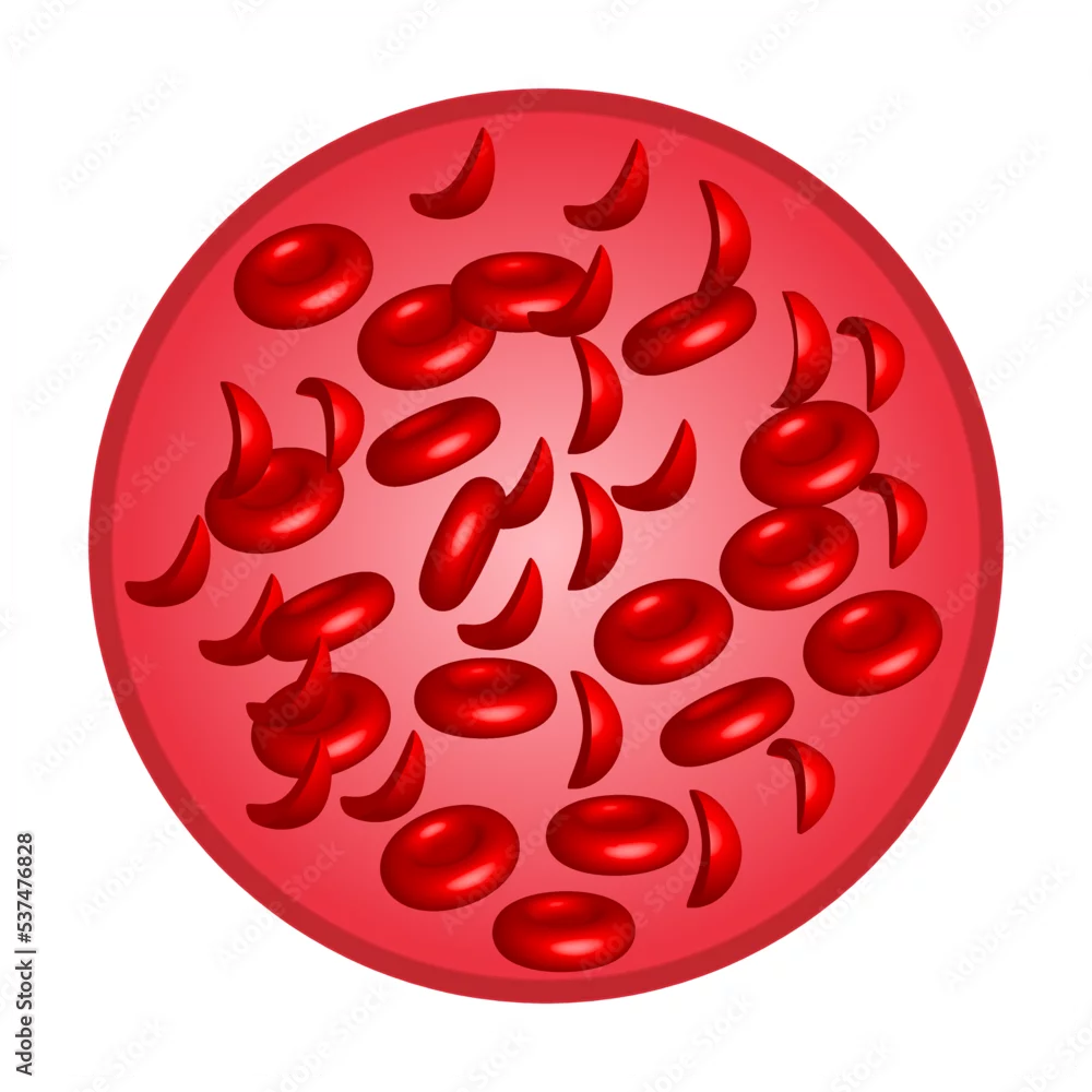 Anemia. Sickle cell anemia. sickle red blood cells. Sickle cell disease. genetic diseases. Realistic vector 3d picture. Vector illustration