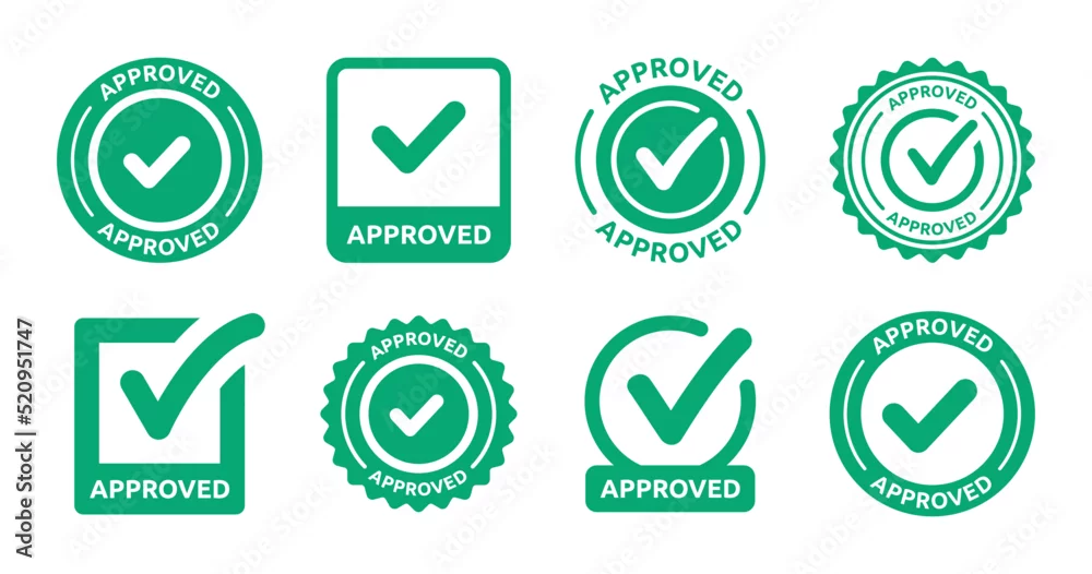 Approved label icon sign vector set. Collection of approval badge with check mark symbol illustration.