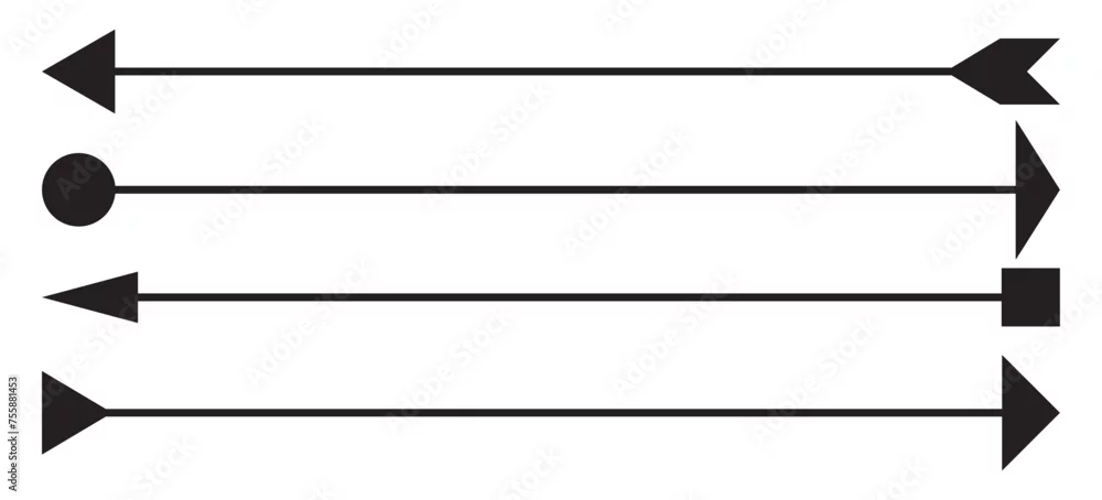 arrow icon. Horizontal long straight arrow signs. position symbol and double arrow icon Black pointer, direction, isolated on white background.
