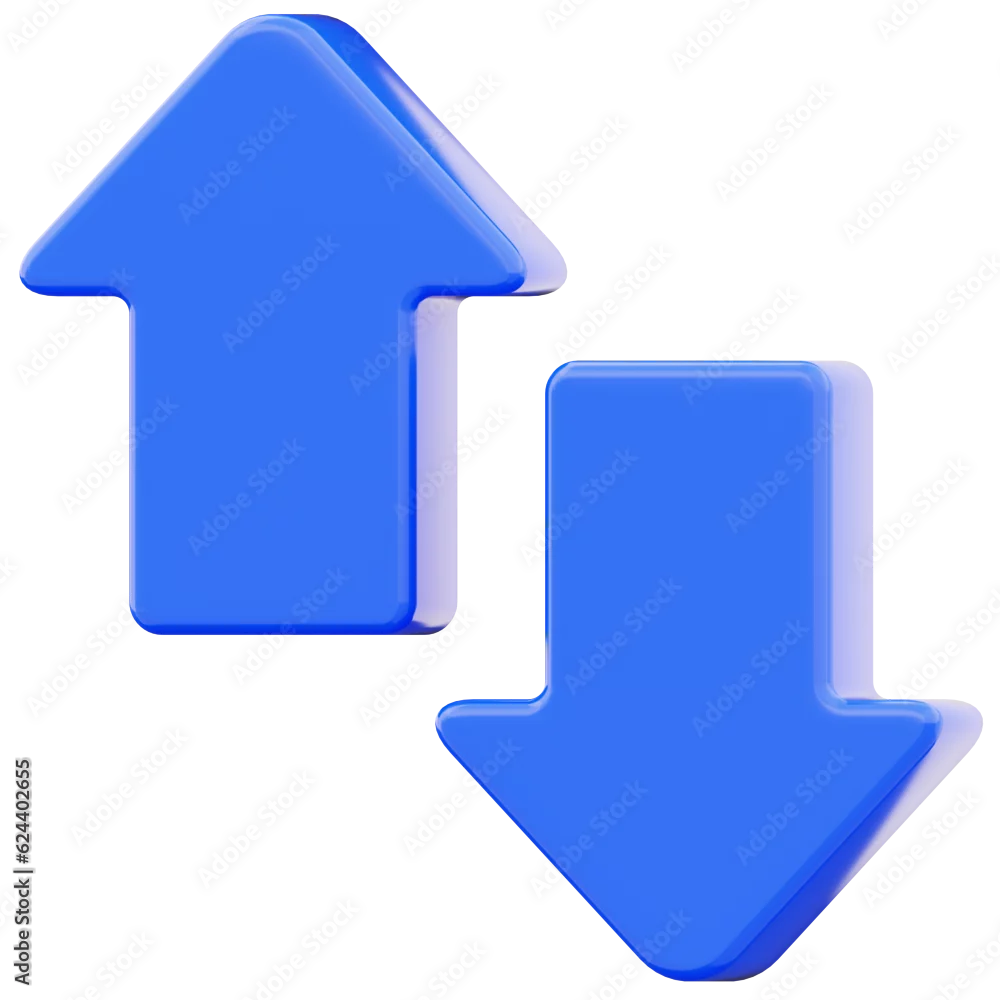 Arrow icon up down symbol 3d render illustration isolated on transparent background