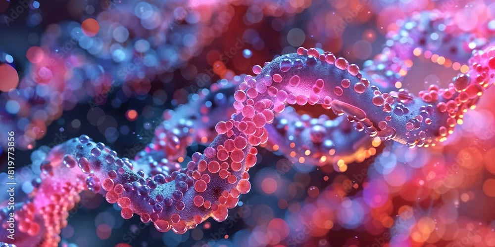 Abstract DNA Strand with Vibrant Colors and Molecular Detail, 3D Visualization of DNA Helix with Colorful Molecular Structure