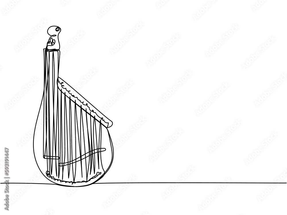 Bandura one line art. Continuous line drawing of music, instrument, folk, musical, ukrainian, culture, acoustic, ethnic, lute, kobza, traditional, mandolin, ...