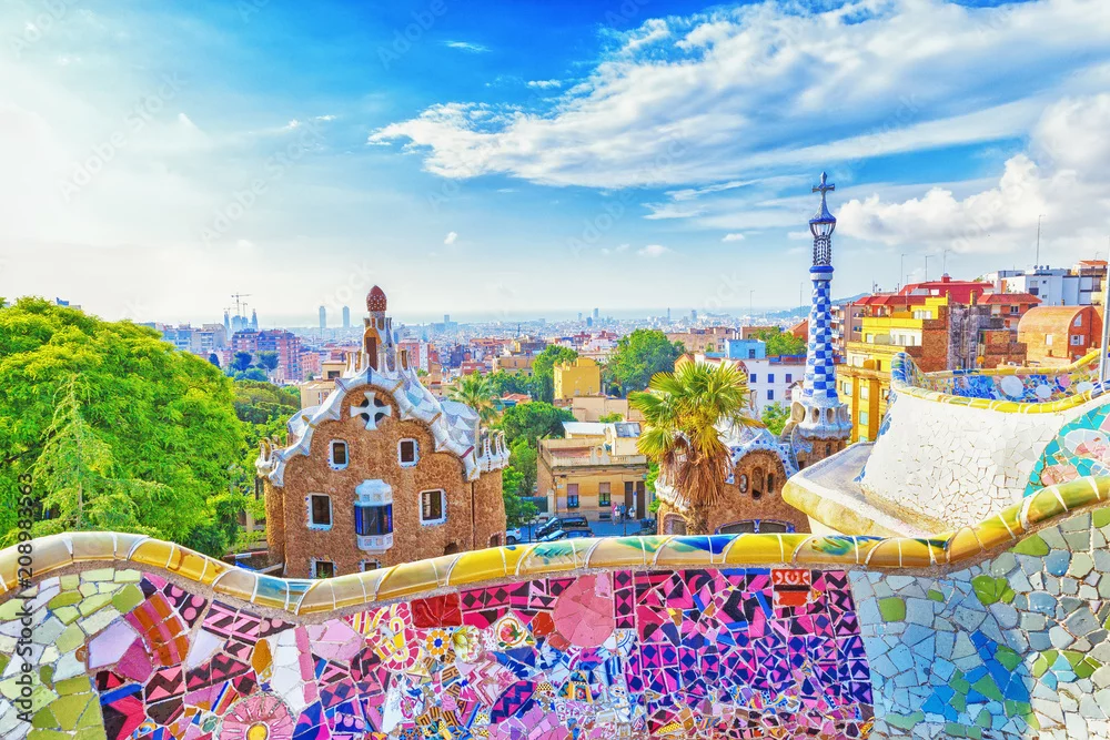 Barcelona, Spain, Park Guell. Fanrastic view of famous bench in Park Guell in Barcelona, famous and extremely popular travel destination in Europe.