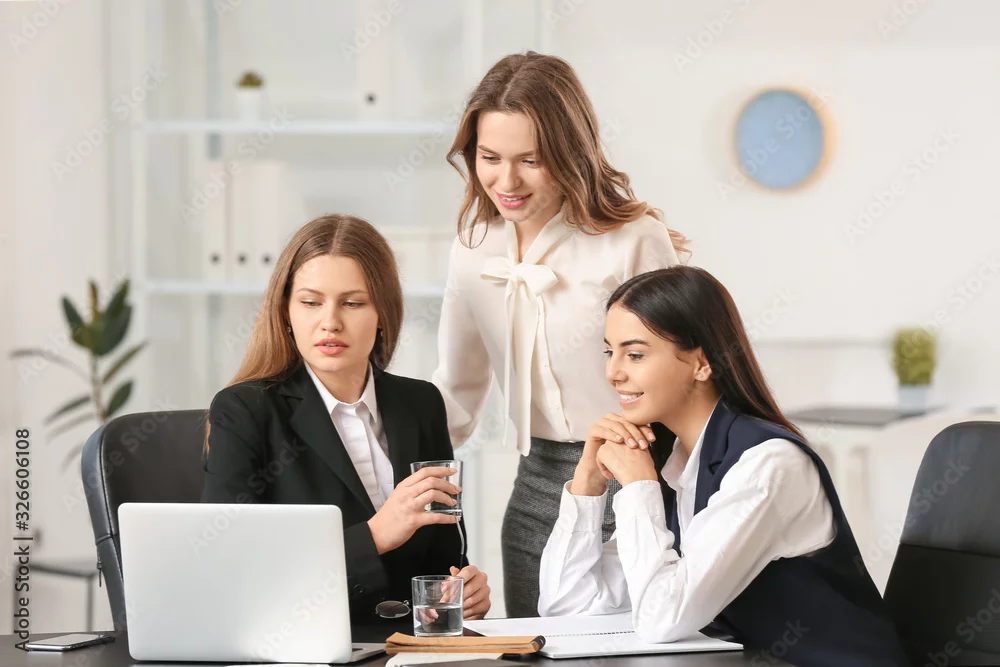 Beautiful young businesswomen working together in office