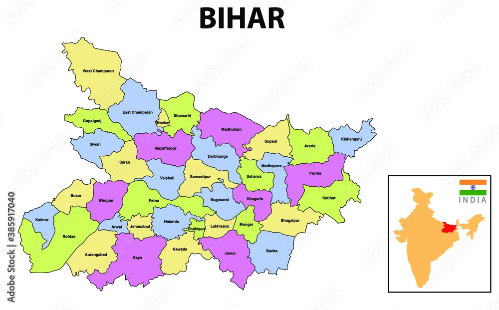 Bihar Map. bihar district map, India. Bihar, India, vector map isolated on white background. High detailed silhouette illustration.