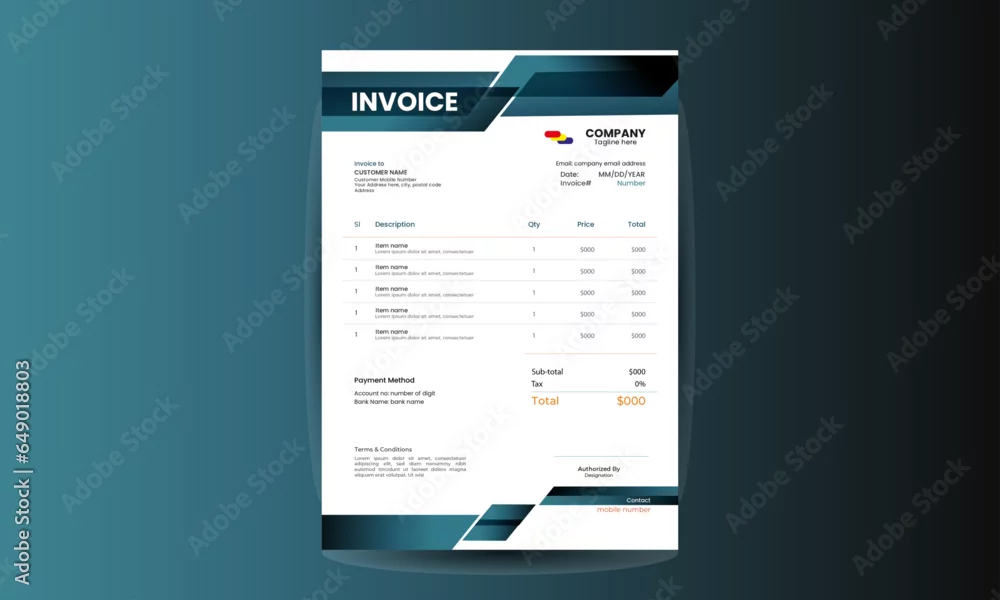 Billing template design, corporate invoice design layout for business with blue colour