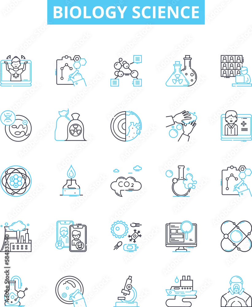 Biology science vector line icons set. Biology, Science, Biochemistry, Cell, Evolution, Genetics, Molecules illustration outline concept symbols and ...