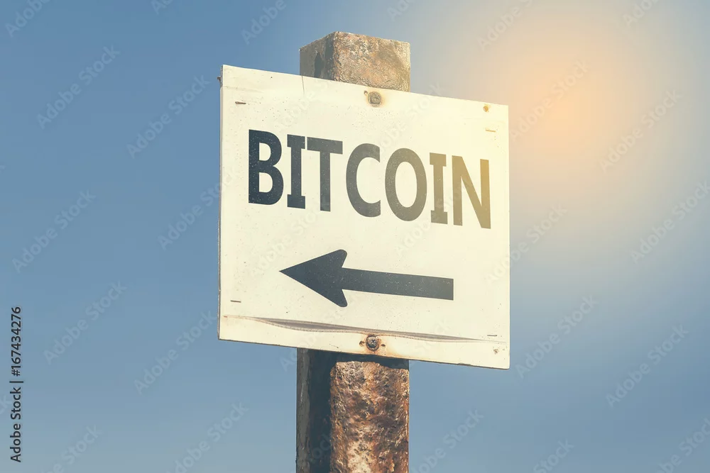 Bitcoin word and arrow signpost 3
